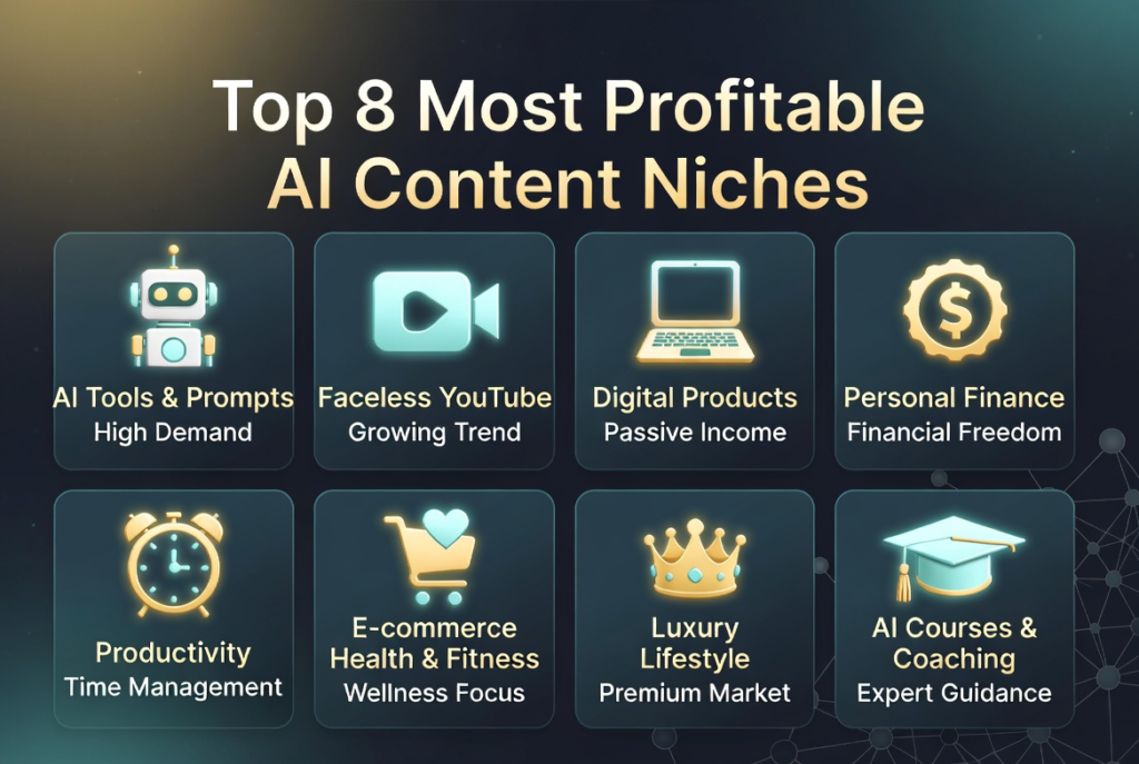 This guide reveals the top 8 most profitable niches for creating and monetizing content with AI. Each niche includes why it works, how to create content with AI, and the best ways to monetize it.