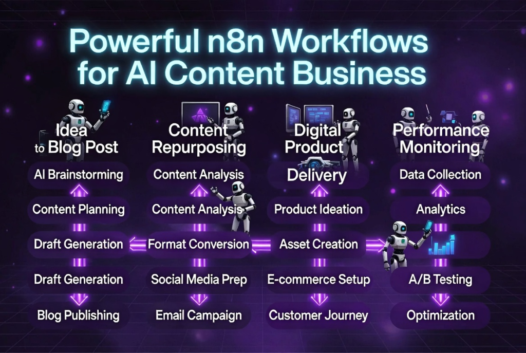 With n8n, you can build sophisticated automations that turn one idea into blog posts, YouTube videos, social media content, email sequences, and digital product deliveries — all automatically.