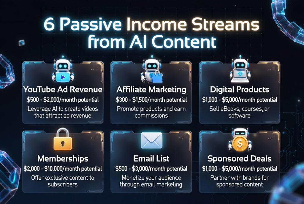 You’ll learn how to turn your AI-generated content into several lucrative passive income streams in this guide.