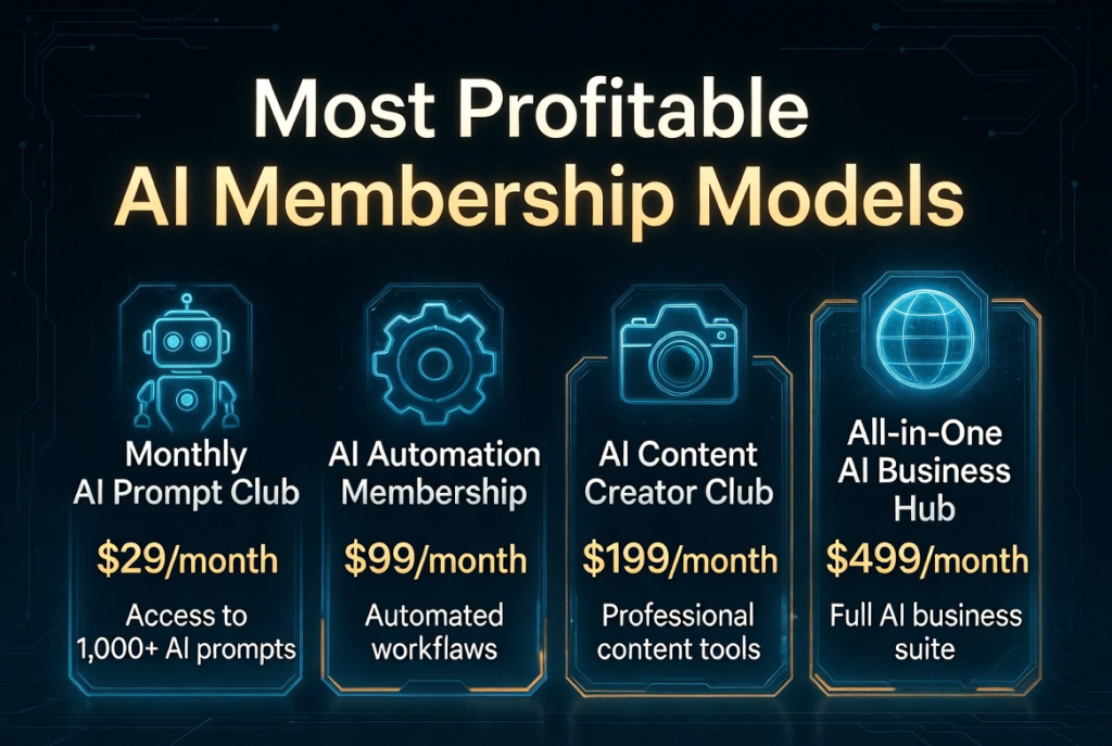Recommended for beginners: Start with a Monthly AI Prompt & Template Club at $29–$49 per month. It’s easy to deliver and highly valuable.